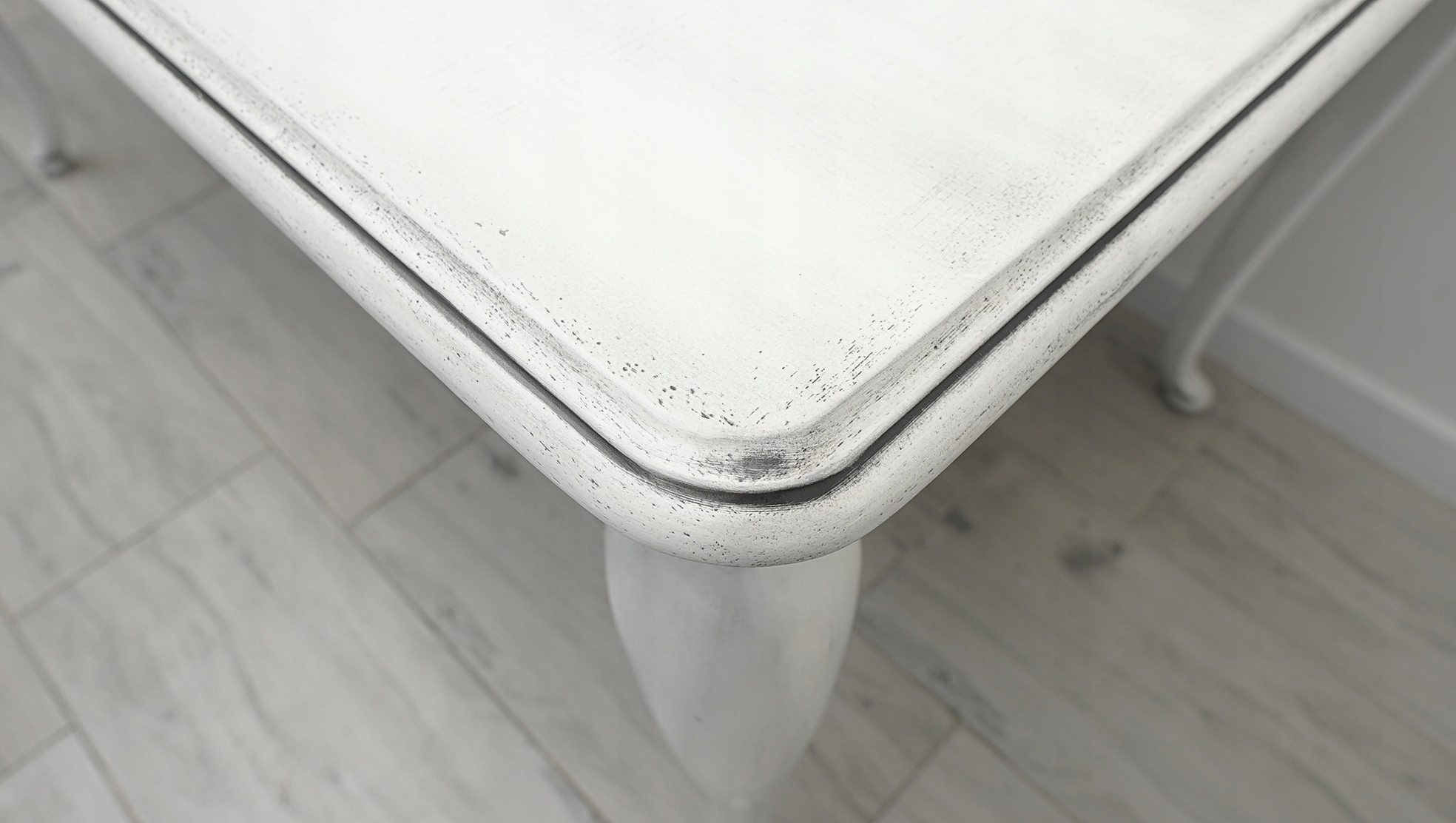 - Wszystkie elementy zostały pomalowane w stylu chabi chic. Meble zostały ozdobione ręcznie, czarną patyną, co nadało im jeszcze większy charakter i sprawiło, że stały się jeszcze bardziej oryginalne.